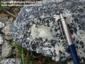 Andronondambo Sapphire deposit: contact zone rich in small pyroxene crystals.