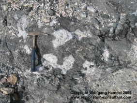 Marosohihy Mine: white plagioclase accumulations with corundum, see next photo.